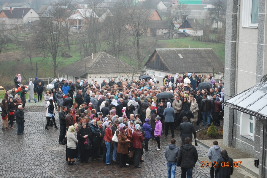 7 квітня 2012 р. у сам святковий празник день розпочався в 7.00 год. Божественною Літургією, яку відслужив Провінційний Вікарій о. Павло Кречун ЧСВВ у спіслужінні з о. Дам’яном Кічою ЧСВВ з Крехівського монастиря та о. Володимиром Маланюк ЧСВВ з Брюхович.