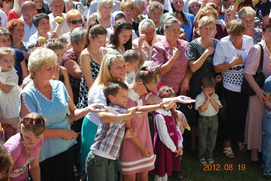 Після подяк і многолітствія, отець Декан Василь освятив, за церковним звичаєм, перші плоди землі, які принесли паломники та окропив усіх свяченою водою, а опісля відбулося мирування.