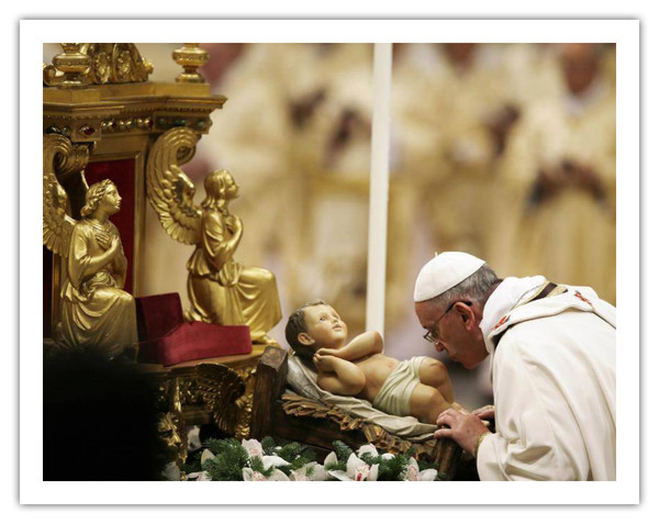 Дорогі брати і сестри, у цьому світі, у цій покірності нині народився Спаситель, який є Христос Господь. Зупинімося перед Вифлеємським Дитятком. Дозвольмо нашому серцю зігрітися ніжністю Бога: ми бо маємо потребу у Його ласках. Бог величний у своїй любові, Йому хвала і слава навіки! Бог є миром: просімо Його допомагати нам будувати мир кожен день у нашому житті, у наших сім’ях, у наших містах та між народами у всьому світі. Нехай нас провадить Божа доброта