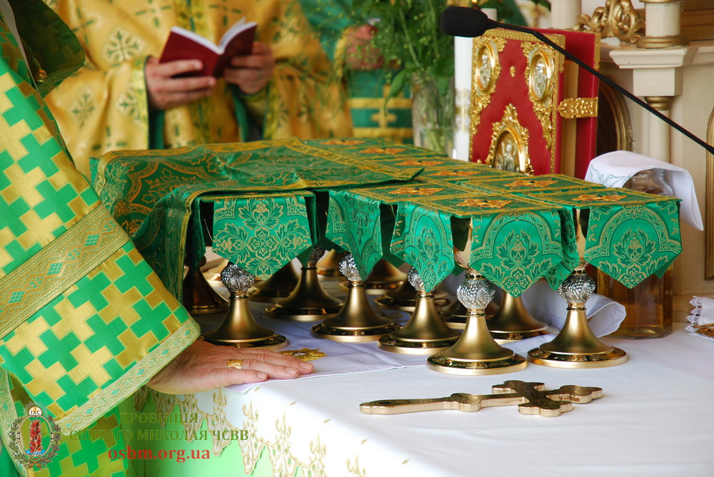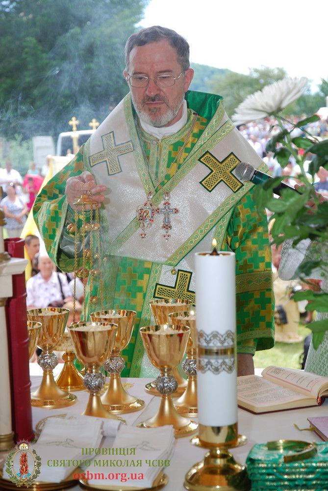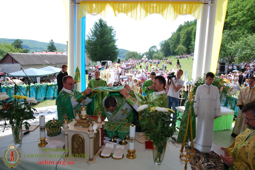 Тут, за участю великої кількості народу, об 11.00 розпочалося головне святкове богослужіння – Архієрейська Божесвенна Літургія. З Преосвященним Владикою Міланом, Літургію співслужили: Протоігумен Василіянської Провінції Святого Миколая в Україні – Високопреподобний отець Павло Райчинець ЧСВВ, Настоятелі Василіянських монастирів в Україні та єпархіяльні декани і священики.