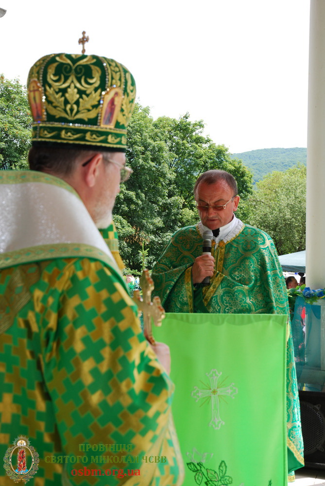 Вітаючи на цих святкуваннях перед Архієрейською Божественною Літургією Єпарха Мукачівського Преосвященного Владику Мілана Шашіка, Протоігумен Василіянської Провінції Святого Миколая в Україні отець Павло Райчинець ЧСВВ, пригадав слова Св. Апостола Павла: «Господь – це дух, а де Господній дух, там воля» (ІІ Кор. 3, 16). Цього року, – зауважив Протоігумен, – коли ми в Україні досвідчили різного роду зазіхання на нашу свободу, Божественна Літургія на свято Зіслання, є для нас особливим молитовним очікуванням Святого Духа – Духа свободи і Духа Божого синівства. Адже згідно слів Апостола: «Ми не прийняли дух рабства, але прийняли Дух усиновлення» (Пор. Рм. 8, 15). Тому, від імені усіх паломників, які зібралися на святкуванні, Протоігумен запросив Преосвященного Владику очолити празничні моління у згаданому наміренні.