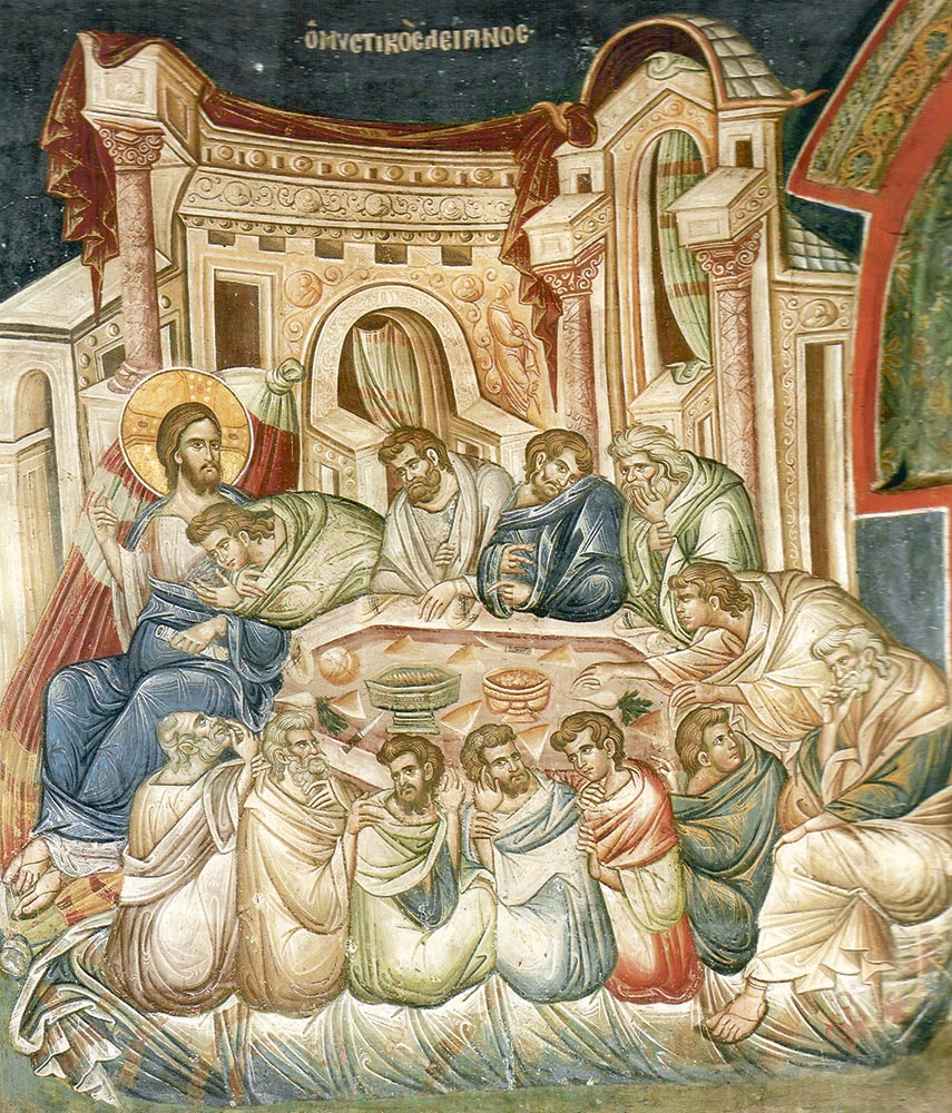 «Настав День Опрісноків, коли треба було жертвувати Пасху. Ісус послав Петра та Йоана: «Ідіть, – сказав, – та приготуйте нам Пасху, щоб ми її спожили». (…) Пішли вони (…) І приготували Пасху. І як прийшла година, сів Він до столу й апостоли з ним. І Він до них промовив: «Я сильно бажав спожити оцю Пасху з вами, перш ніж мені страждати, бо кажу вам, Я її більш не буду їсти, аж поки вона не звершиться в Божім Царстві». (…) І, взявши хліб, віддав хвалу, переломив, дав їм і мовив: «Це Моє Тіло, що за вас віддається. Чиніть це на Мій спомин». Так само чашу по вечері, кажучи: «Ця чаша – це Новий Завіт у Моїй крові, що за вас проливається» (Лк. 22,7- 20; Пор. Мт. 26, 17-19; Мр. 14, 12-25; 1 Кор. 11, 23-26.).
