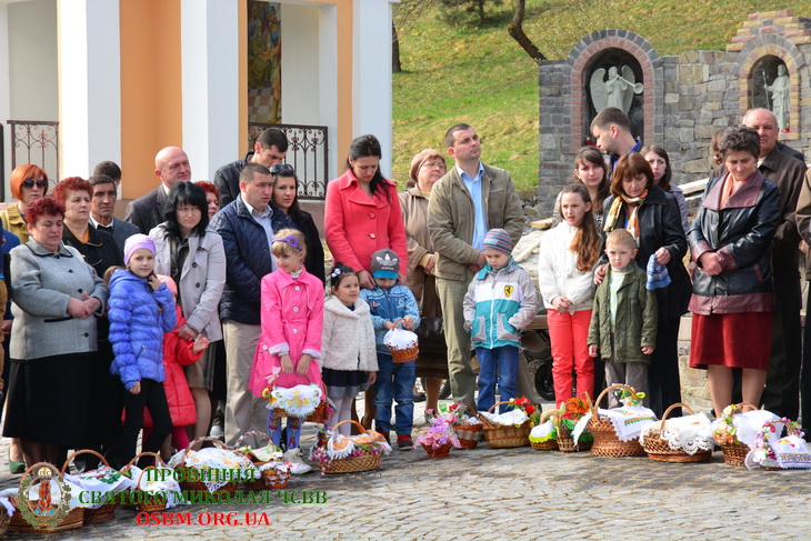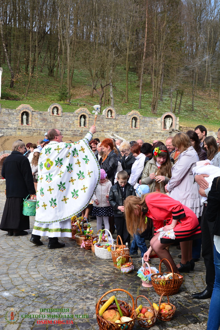 Після завершення Божественної Літургії, відбулося благословення пасок на монастирському подвірʼї та привітальне слово, яке виголосив о. Андрій Берелеканич ЧСВВ.