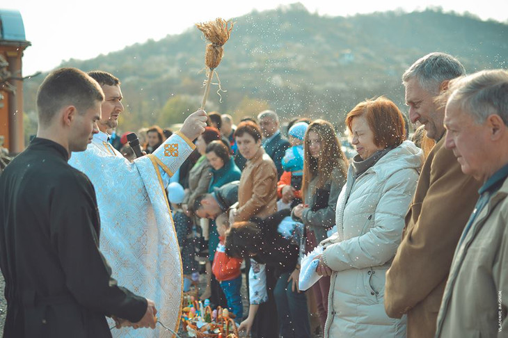 Після Літургії, на монастирському подвірʼї, відбулося благословення пасок.