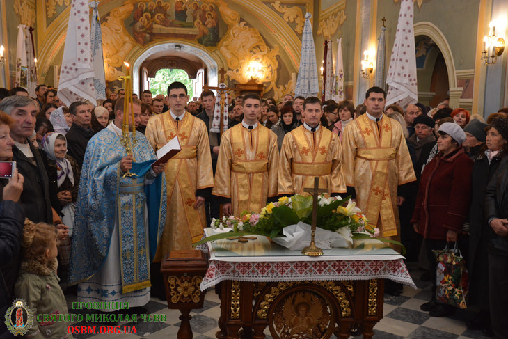Під час Служби Божої, Кир Василій виголосив проповідь, присвячену празнику Покрови Пресвятої Богородиці, а також події дияконських свячень, що в цей день були уділені ченцям-василіянам: Домініку Налиснику, Івану Петришаку, Йосафату Поповичу та Пантелеймону Зеленко, які навчаються у Василіянському Інституті Філософсько-Богословських Студій (Львів-Брюховичі).