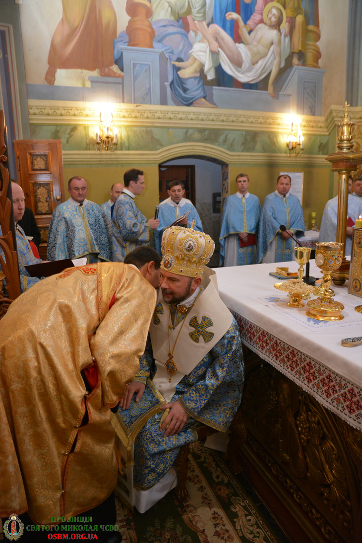 Архієрейську Божественну Літургію з Преосвященним Владикою співслужили Протоігумени Василіянських Провінцій в Україні: о. Пантелеймон Саламаха ЧСВВ (Провінція Найсвятішого Спасителя) і о. Павло Райчинець ЧСВВ (Провінція Святого Миколая), а також Ієромонахи Василіянського Чину з різних монастирів та інші священики.