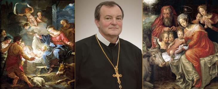Сьогодні ми разом з ангелами запрошені величати народження Христа словами:«Слава на висотах Богу й на землі мир людям його вподобання». Звеличаймо Бога дзвінкою колядою, бо прийшло спасіння! Світло засяяло, щоб просвічувати людству шлях, щоб заблуканих і знедолених провадити до миру і братерства – до безпечної домівки милосердного Отця Небесного. Бог стає серед нас як людина, щоб своїм приниженням піднести нас до гідності дітей Божих. Радіймо і веселімось, бо Слово стало Тілом і оселилося між нами, щоб бути з намиповіки!