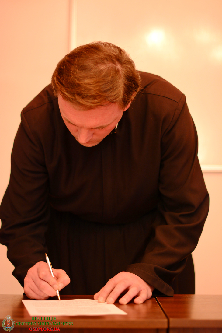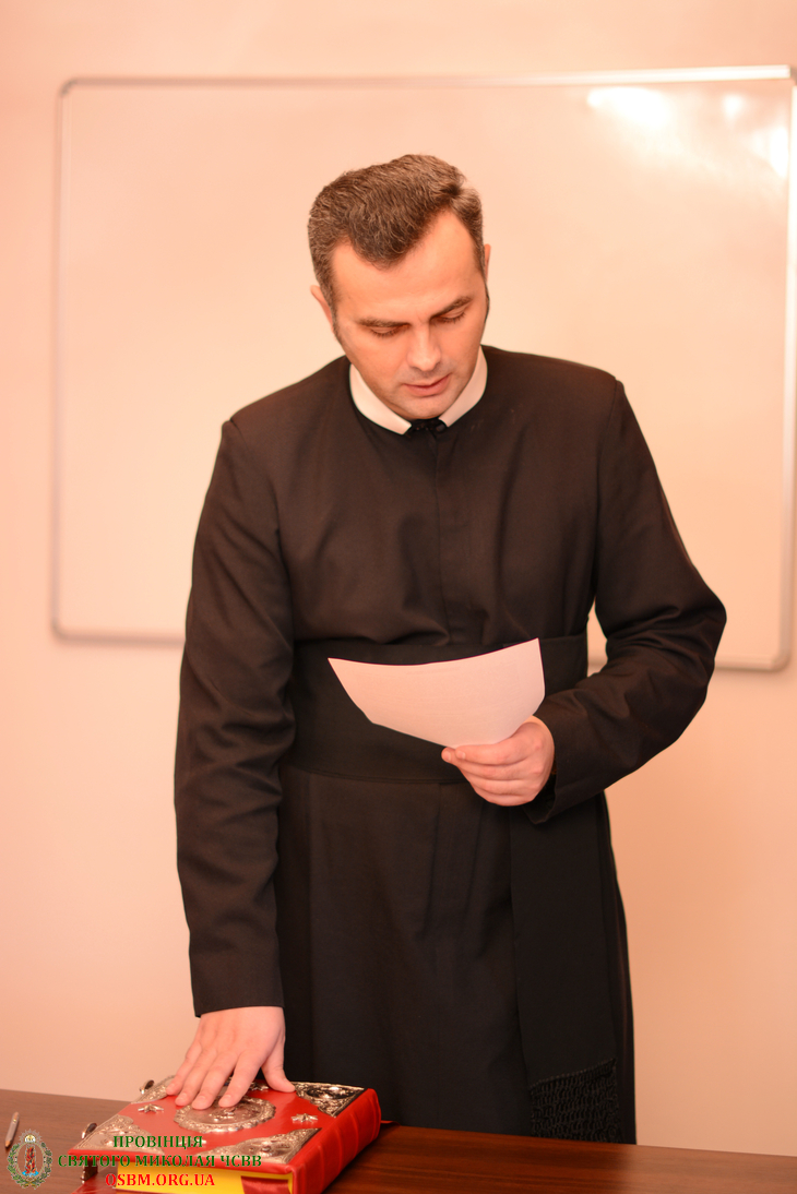 Провінційний Радник о. Михайло Станко ЧСВВ, складає визнання віри і присягу.