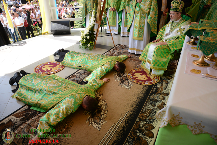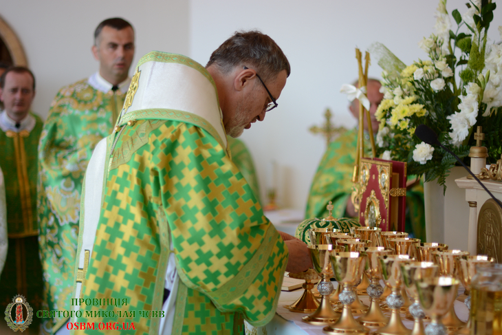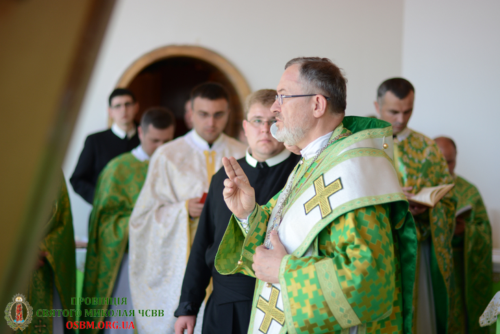 Святкову Божественну Літургію на празник Зіслання Святого Духа очолив Єпарх Мукачівської Греко-Католицької Єпархії, Преосвященний Владика Мілан Шашік, з яким співслужили: Протоігумен Провінції Святого Миколая о. Андрій Белеканич ЧСВВ, Отці Василіяни з різних Василіянських монастирів в Україні та єпархіяльне духовенство.
