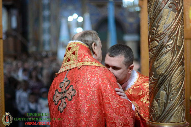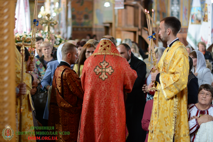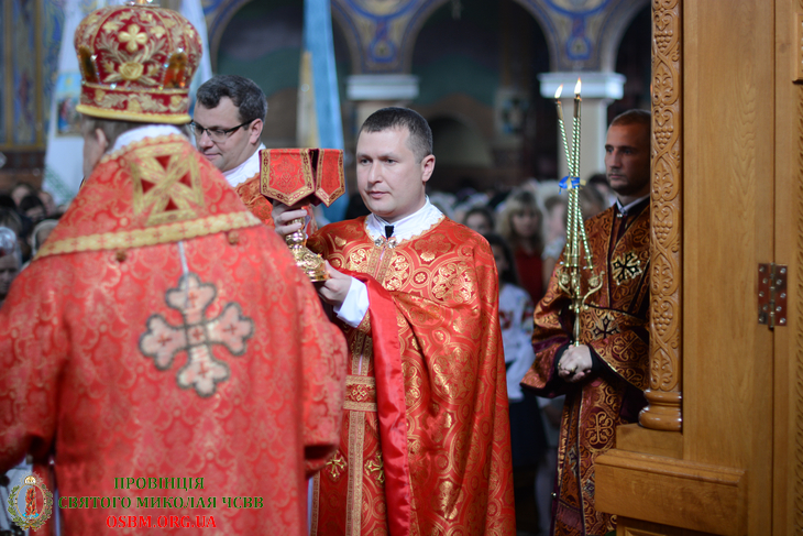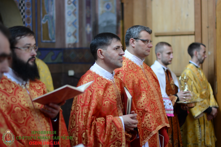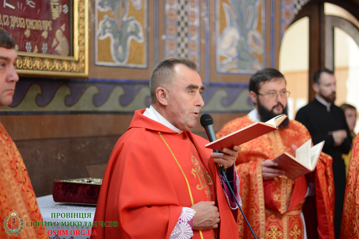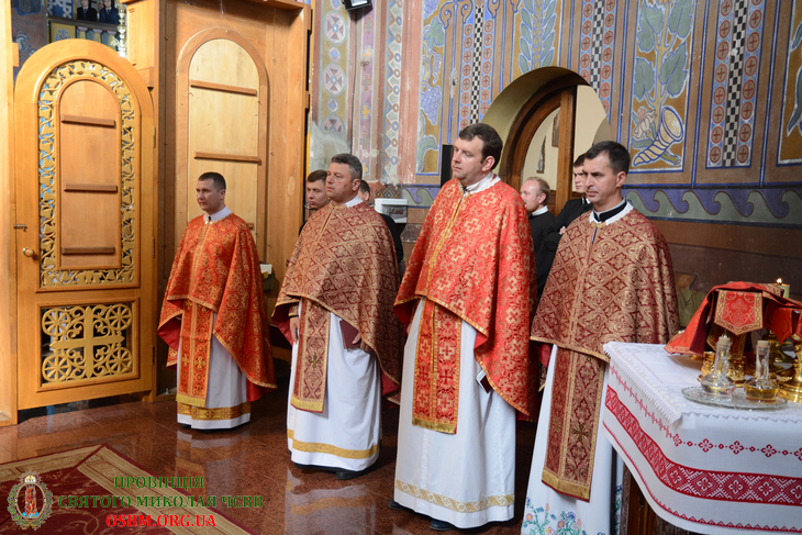 Святкову Літургію співслужили: Протоігумен Провінції Найсвятішого Спасителя о. Йоан Школик ЧСВВ, Провінційний Економ о. Веніамин Чернега, Ігумен Жовківського монастиря о. Григорій Анастасин ЧСВВ та ієромонахи з інших василіянських монастирів: о. Климентій Стасів ЧСВВ (м. Жовква), о. Єремія Рибаков ЧСВВ (м. Київ), о. Венедикт Деркач ЧСВВ (м. Чортків), о. Марко Максимів ЧСВВ (м. Володимир-Волинський), о. Никанор Ситар ЧСВВ (Брюховичі – ВІФБС), о. Юзеф Легович (м. Жовква – РКЦ), о. Ярослав Малиш (секретар Кир Михаїла Колтуна), д. Мирослав Куян ЧСВВ (м. Херсон).