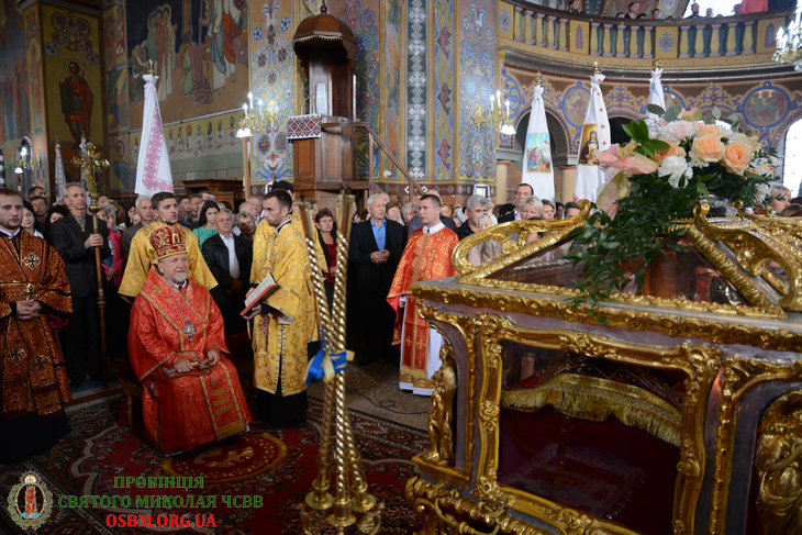 Завершилися святкування Величальною піснею на честь Покровителя монастиря і цілого міста, перед його мощами, що були виставлені в храмі для привселюдного вшанування, після чого Ігумен о. Григорій висловив подяку присутнім гостям та привітання для всіх парафіян і жовківчан.