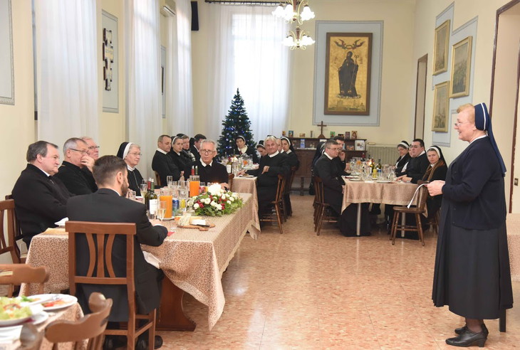З нагоди празника святого Василія в монастирі Головної Управи відбувся святковий обід, на якому, крім отців і братів Римської василіянської обителі, були присутні Преосвященні владики Діонісій Ляхович та Іриней Білик, працівник Конґреґації для Східних Церков монс. о. Ярослав Карп’як, мати Протоархимандриня Дія Стасюк та сестри з дому Головної Управи Сестер Чину Святого Василія Великого, Генеральна настоятелька мати Тереза Слота та сестри з дому Головної Управи Сестер Служебниць Непорочної Діви Марії, Настоятелька дому святої Софії, що біля церкви святих Сергія і Вакха, с. Ріта Балдо, Настоятелька адміністратури в Україні с. Даліла Шмигельська та інші сестри Згромадження Катехиток Святої Анни, працівниця Радіо Ватикану п. Тетяна Шуфлин, отці василіяни з Папської Української Колегії Святого Йосафата: ректор о. Луїс Касіян, віце-ректор о. Теодосій Грень і духовник о. Роберт Лисейко, – а також автор ювілейної ікони святого Василія Великого брат Анастасій Смерека, ЧСВВ, який з цієї нагоди приїхав у Рим з України, де проживає в Улашківському василіянському монастирі.