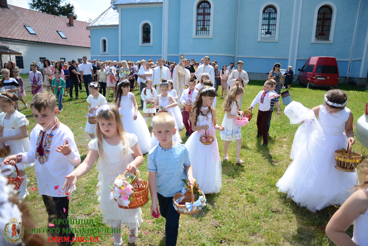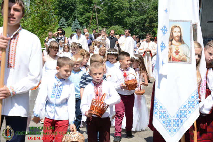Після Літургії відбулося виставлення Святих Тайн та процесійний хід довкола храму, який очолили ієромонахи Малоберезнянського монастиря: о. Лука Буняк ЧСВВ, о. Йосафат Сичкун ЧСВВ та о. Еміліян Гавей ЧСВВ. Першопричасники супроводжували в процесії Євханистійного Ісуса розсипаючи перед Ним пелюстки троянд. Навколо храму біля трьох престолів процесія зупинялася, виголошуючи молитовні благання.