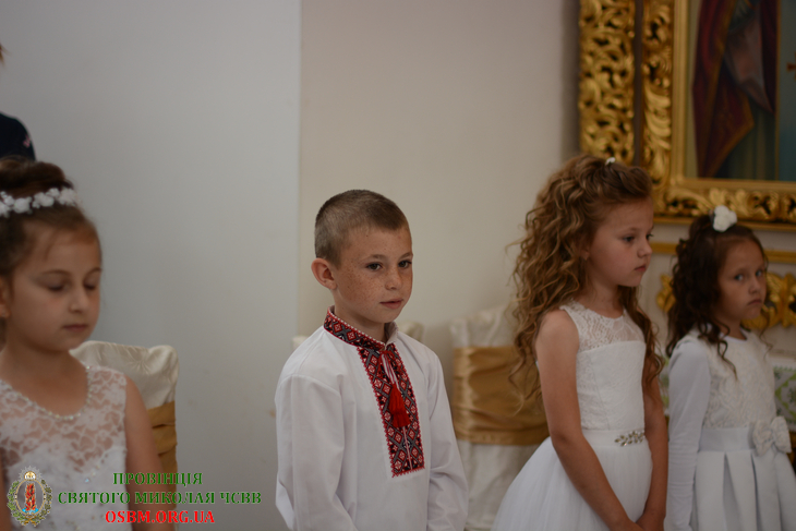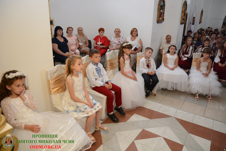 Перед початком Літургії, дітей, у супроводі батьків, привів до храму їхній катехит о. Йосафат Сичкун ЧСВВ, де їх зустрів парох о. Лука Буняк ЧСВВ. У притворі храму діти відновили свої хресні обітниці Христові та урочисто увійшли до церкви.