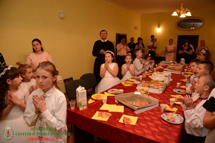 Після спільних фотографій, діти з батьками зустрілися у монастирській вітальні на святковий почастунок.