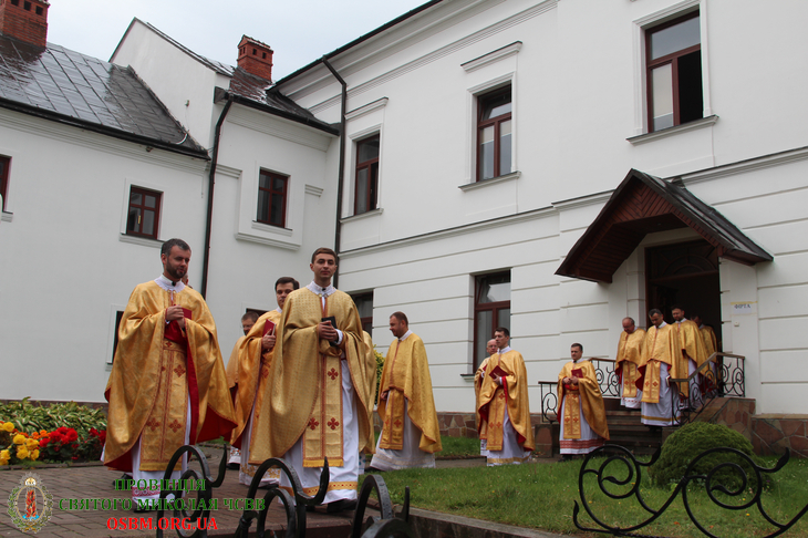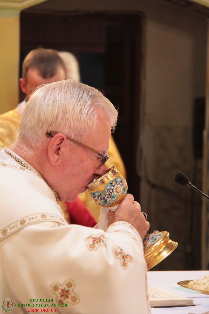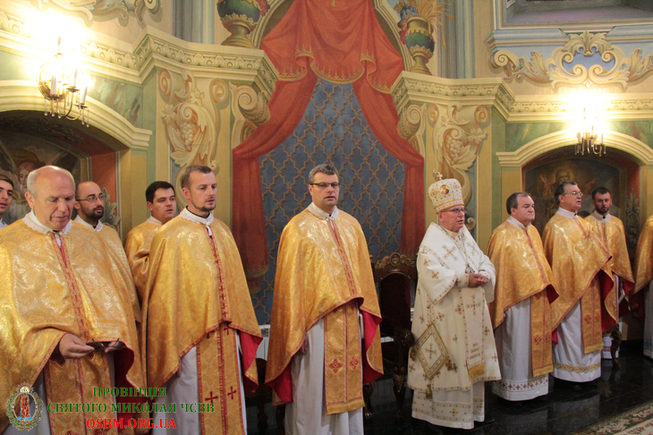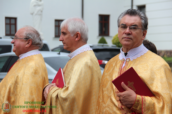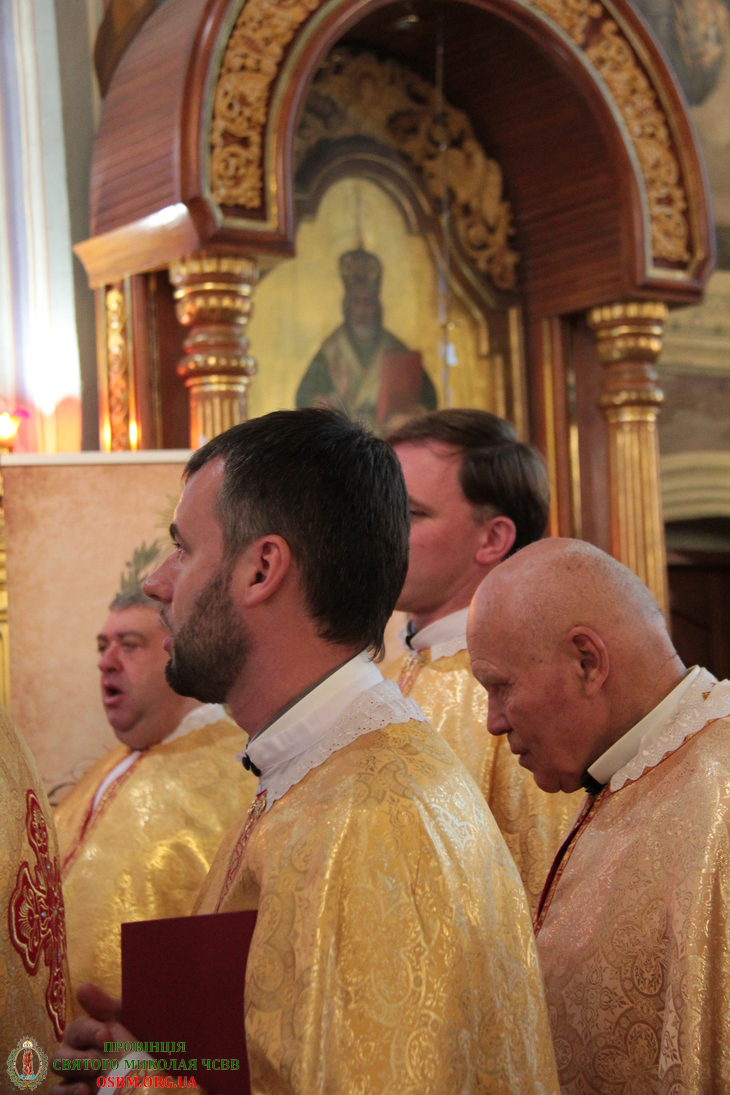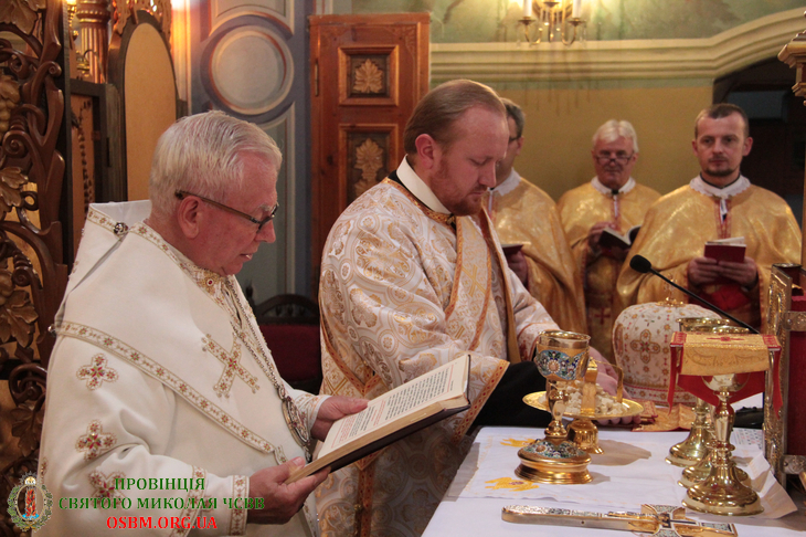 Літургію співслужили: Протоархимандрит Василіянського Чину Св. Йосафата о. Ґенезій Віомар, Протоігумен Провінції Найсвятішого Спасителя в Україні о. Йоан Школик ЧСВВ, Протоігумен Американської Провінції о. Василій Салковський ЧСВВ, Протоігумен Бразилійської Провінції о. Антоній Роїк Собріньо ЧСВВ, Протоігумен Отців Редемптористів в Україні о. Андрій Рак та Настоятелі й ієромонахи-василіяни з різних Провінцій Василіянського Чину.