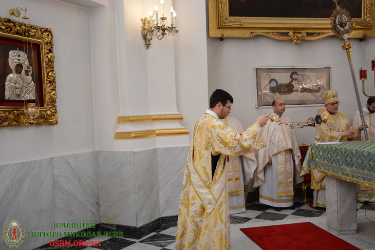 Архієрейську Божественну Літургію очолив Преосвященний Владика Василій Медвіт ЧСВВ, який проживає у Варшавському монастирі. З ним співслужили: Протоігумен Польської Провінції о. Миколай Козіцький ЧСВВ, Протоігумен Української Провінції Св. Миколая о. Андрій Белеканич ЧСВВ, Консультор Польської Провінції о. Ігор Гарасим ЧСВВ, Ректор Василіянського Інституту Філософсько-Богословських Студій о. Пантелеймон Трофімов ЧСВВ (Брюховичі – Україна), о. Василь Парасюк ЧСВВ з Василіянського монастиря у Венгожеві (Польща) та о. д. Піо Павлик ЧСВВ (ВІФБС – Україна).