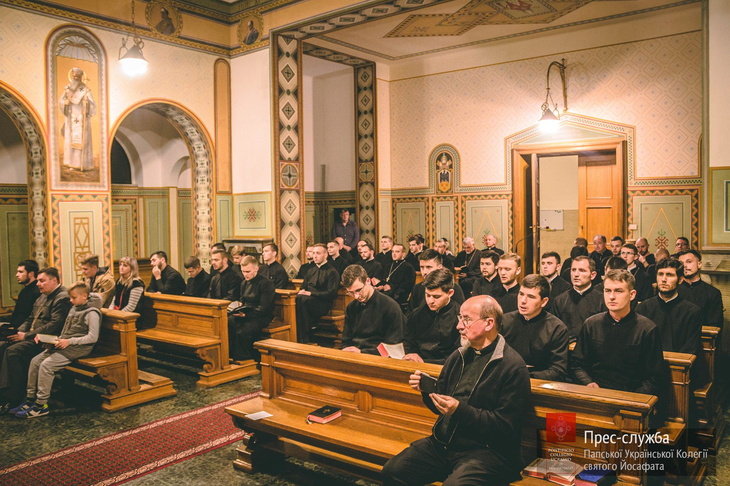 Другу частину своєї проповіді архиєрей присвятив події, яку в ці дні урочисто відзначають, – 85-тій річниці від заснування нового осідку Папської Української Колегії, якої святий Йосафат є небесним Покровителем. Ця Колегія, – наголосив владика Іриней, – була під час переслідування Католицької Церкви в Україні єдиною в Європі українською греко-католицькою семінарією. Вона була і залишається кузнею духовної еліти для нашої Церкви і народу, її випускники – єпископи, священики і миряни – багато послужили своєму народові та своїй Церкві.