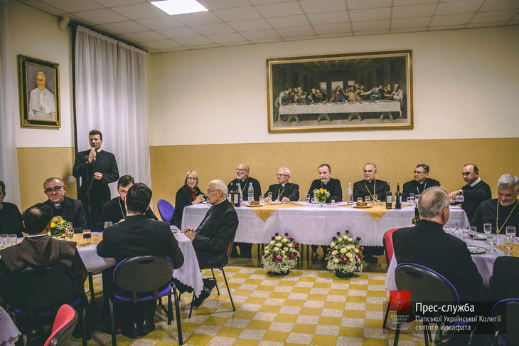 Після відправи молебню розпочався святковий обід, під час якого лунали численні привітання для Колегії та слова вдячності на адресу Конгрегації для Східних Церков, ректорату колегії, її працівників, за те, що спільними зусиллями дбають про інтелектуальний, культурний та духовний розвиток майбутніх священнослужителів Української та інших Східних Католицьких Церков.