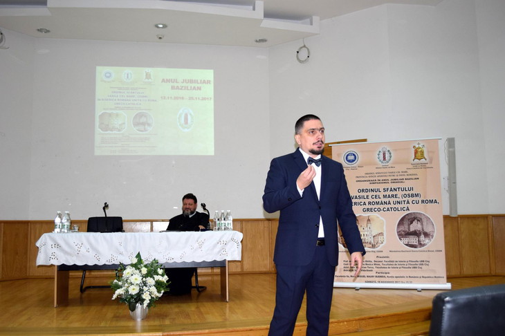 Після цього були представлені доповіді на теми, пов’язані з історією ЧСВВ, які виголосили видатні викладачі факультету історії та філософії Клузького університету Бабеша-Бойяї, починаючи від декана цього факультету, проф. д-ра п. Овідіу Ґітти, який представив тему про Василіянський Чин і церковне з’єднання в Центральній Європі (XVIІ ст.). У другій частині презентації історія поступилася місцем пам’яті. Професор згадав місця свого дитинства, у місцевосці Біксад. «Коли я народився, Чин був поза законом, від 1948 року його більше не було. Ченці були вигнані, ув’язнені, але пам’ять залишилася. Будучи школярем, я бачив кожен день під час перерви монастирський пагорб у Біксаді. Монастир був закритий, але це було місце, про яке продовжували передаватися легенди, оповідання. Я казав, що василіяни – спільнота молитви та праці. І так, перші історії про монахів з Біксада я почув від тих, хто навчався ремеслу в монастирі. Я зрозумів з їхніх оповідань, який глибокий вплив мав монастир на цю громаду. Я знаю людей, які навчилися теслярської роботи, садівництва, мистецтва друку, палітурного переплету від монахів з Біксада, і всі говорили з благоговінням про тамтешніх отців. (…) я бачив протягом багатьох років у Біксаді паломницькі свята, організовані на честь Пречистої Діви Марії, я бачив юрби, що йшли з різних місць округу та з-за меж округу, у колонах, з прапорами попереду, співаючи марійські пісні, навіть якщо вони не йшли до монастиря [, який у той час був зачинений і паломництва до монастирської церкви заборонені – прим. перекладача], а тільки до парафіяльної церкви в Біксад.