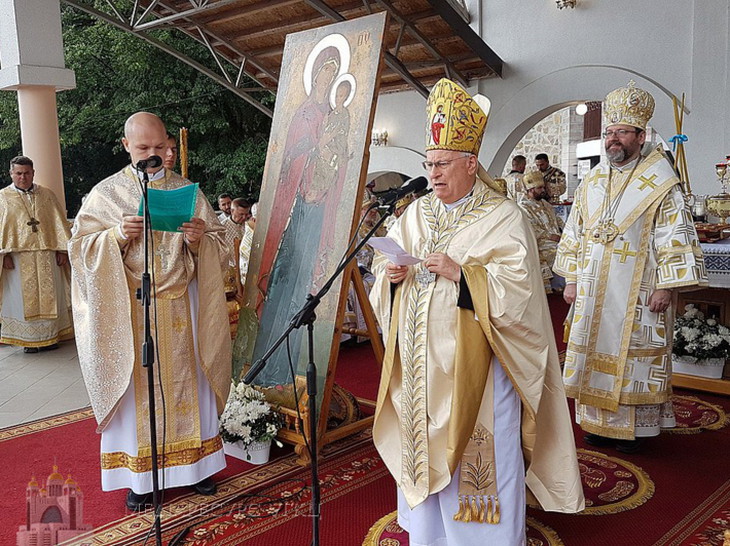 «До цієї святині, – каже посланник Папи Франциска, – звертають свої думки і молитви українські вірні, що живуть на Батьківщині, а також і ті, яких життя розкидало по цілому світі. Багато українців живуть в Італії, де їх приймають і поважають за віддану працю на підприємствах, поряд із людьми похилого віку та хворими людьми. Віра в Господа Ісуса єднає нас і робить братами одні одним. Братами, які допомагають одні одним у різних потребах, як це, наприклад, відбувається між доброчинними організаціями міста Перуджа та Київським Карітасом».