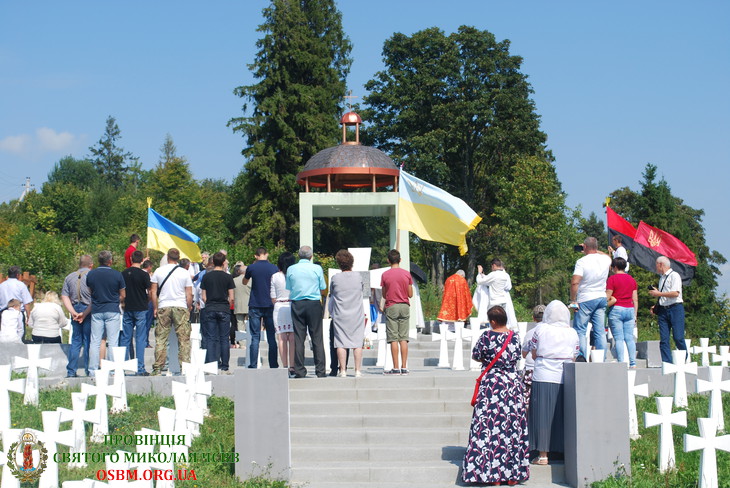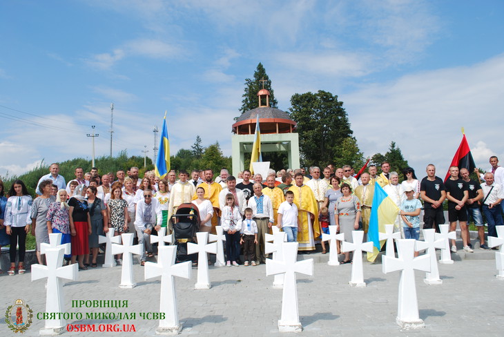 Вшанування розпочалася опівдні Божественною Літургію, яку відслужили понад 20 священників зі Стрийської, Сокальської, Самбірсько-Дрогобицької єпархій Української Греко-Католицької Церкви та Мукачівської Греко-Католицької єпархії. Службу Божу очолив та святкову проповідь виголосив о. Михайло Ільницький, Парох церкви Св. Володимира з м. Стрий, який також є капеланом АТО. Також, у Святій Літургії взяли участь оо. Василіяни з Провінції Святого Миколая, зокрема, о. Михайло Станко, ЧСВВ, Настоятель Малоберезнянського монастиря та о. Тарас Іванина, ЧСВВ, Настоятель Боронявського монастиря. Супроводжував богослужіння парафіяльний хор стрийського храму Св. Володимира. У цій події також взяли участь представники молодіжно-патріотичних організацій, патріоти та громадські активісти з обидвох областей.