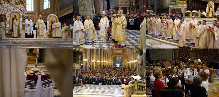 Відтак розпочалася Архиєрейська Божественна Літургія. У проповіді, яка була виголошена італійською мовою, Глава УГКЦ підкреслив наступне: “Сьогодні ми тут об’єднані разом із нашим Божественним Служителем, Який готовий нас слухати і прийняти наше благання. Ми пригадуємо [ці події] не для того, щоби мститися, скаржитися чи розпалювати, як сказав би Папа Франциск, негативну пам’ять, що пам’ятає гріхи минулого, однак інших, але не власні. Ми пригадуємо ці події, щоби вчитися, лікувати і запобігати”.