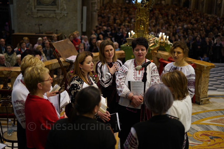 Наприкінці моління, владика Діонісій (Ляхович) зачитав лист від Єпископської конференції Італії, а о. Володимир Волошин, координатор для українців у Італії, подякував усім тим, хто прилучився до організації цього заходу та хору української парафії свв.мчч. Сергія і Вакха в Римі, який супроводжував своїм співом Літургію.