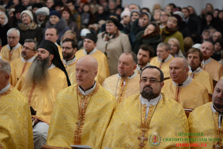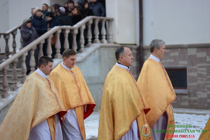 В чині освячення та співслужінні Літургії взяли участь численні отці Василіянського Чину Св. Йосафата на чолі з Протоархимандритом о. Ґенезієм Віомаром та ієромонахами Генеральної Управи: о. Йоанікієм Чверенчуком (Генеральний Вікарій) та о. Діонисієм Заведюком (Головний Радник). Зокрема були присутні: місцевий Протоігумен о. Йоан Школик, Протоігумен Провінції Св. Миколая в Україні о. Андрій Белеканич, Протоігумен Провінції Покрови Пресвятої Богородиці у Польщі о. Миколай Козіцький, Настоятелі та Ієромонахи Василіяни, ректори семінарій й навчальних закладів УГКЦ, духовенство двох обрядів Католицької Церкви в Україні, фундатори та доброчинці і вірні з прилеглих й дальших околиць.