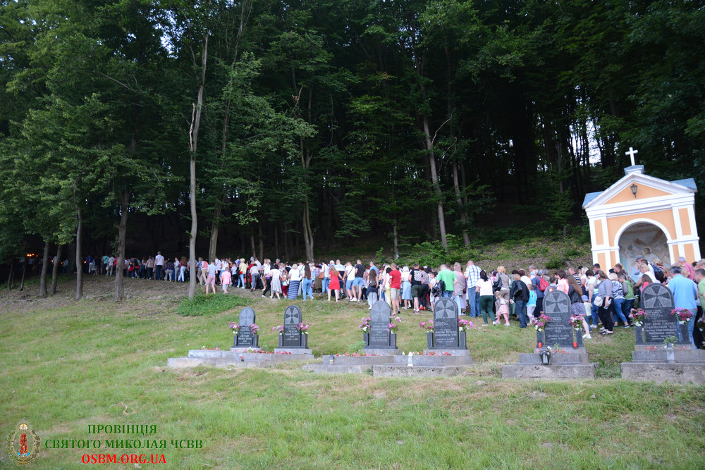 О 21:00 розпочався хресний хід по чернечій горі з духовними призадумами на кожній стації, які виголосив о. Артемій Новіцький, ЧСВВ.