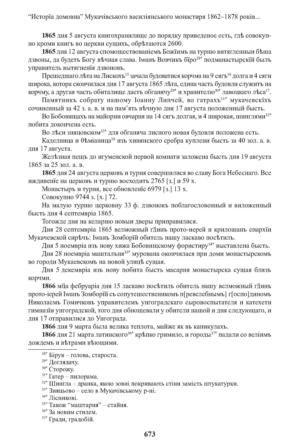 Одним з таких джерел є представлена “Исторїа домовна” Мукачівського монастиря. Особливої ваги цьому твору надає доба появи – третя чверть ХІХ ст. Це був час значних зрушень на Закарпатті, коли наперекір ініціативам місцевих активістів на чолі з Адольфом Добрянським про об’єднання Закарпаття і Галичини в одну провінцію[24], після поразки “Весни народів” угорський чинник поступово набирав ваги, що привело до перетворення Австрійської імперії в Австро-Угорщину – дуалістичну монархію. Як результат, українці краю опинилися сам на сам з асиміляційними ініціативами угорської адміністрації, що штовхнуло одну частину місцевих еліт до панславізму і русофільства, як-от Добрянського[25], а іншу, як-от священника і редактора Миколу Гомічкова – спершу до русофільства, а далі до мадяронства, бо “литература пишется везде для господинов”[26]. Про візит Гомічкова “Исторїа домовна” згадує у записі під датою 15 лютого 1866 р., а про обрання Добрянського “співбратом” Чину – у записі 1869 р. без вказання точної дати.
