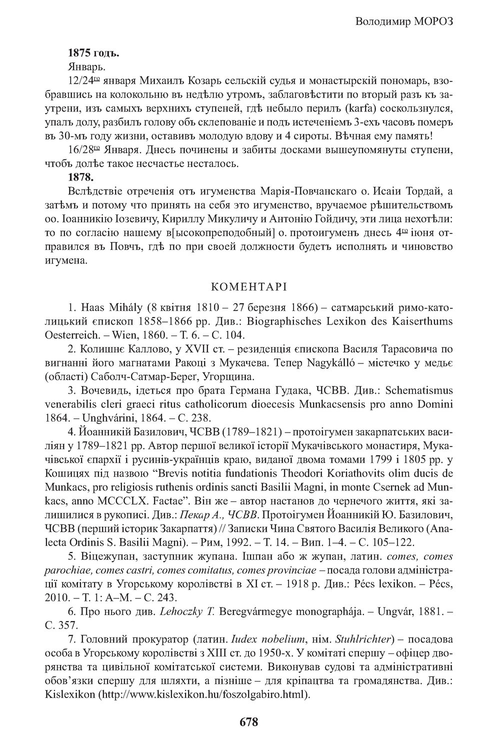 [16] Його розвідку про історію Мукачівської єпархії див.: ДАЗО. – Ф. 151. – Оп. 1. – Спр. 219; його ж латинські записки див.: Там само. – Ф. 64. – Оп. 1. – Спр. 33.