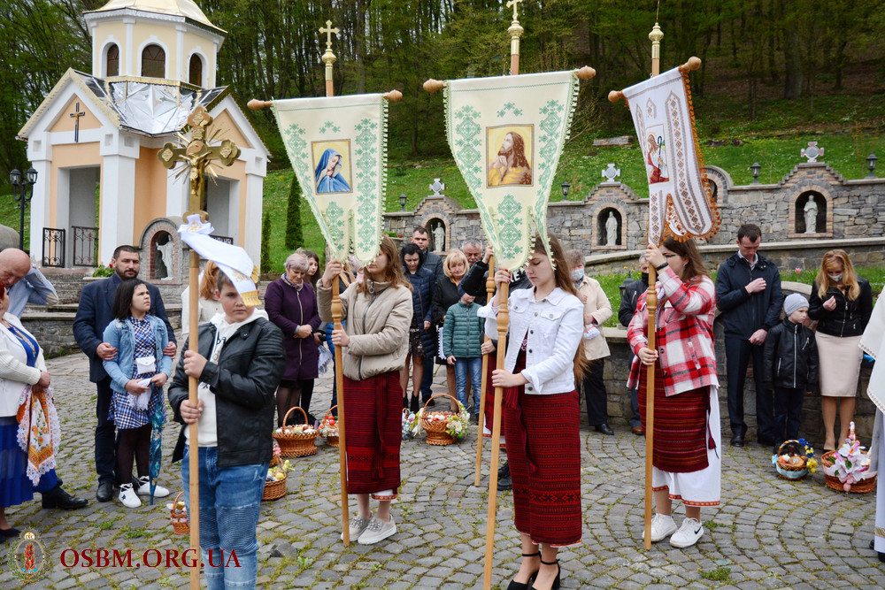 Після Літургії, на монастирському подвір’ї відбулося посвячення пасок, після чого привітання для парафіян та гостей виголосив Настоятель о. Лука, висловивши усім найщиріші великодні побажання.