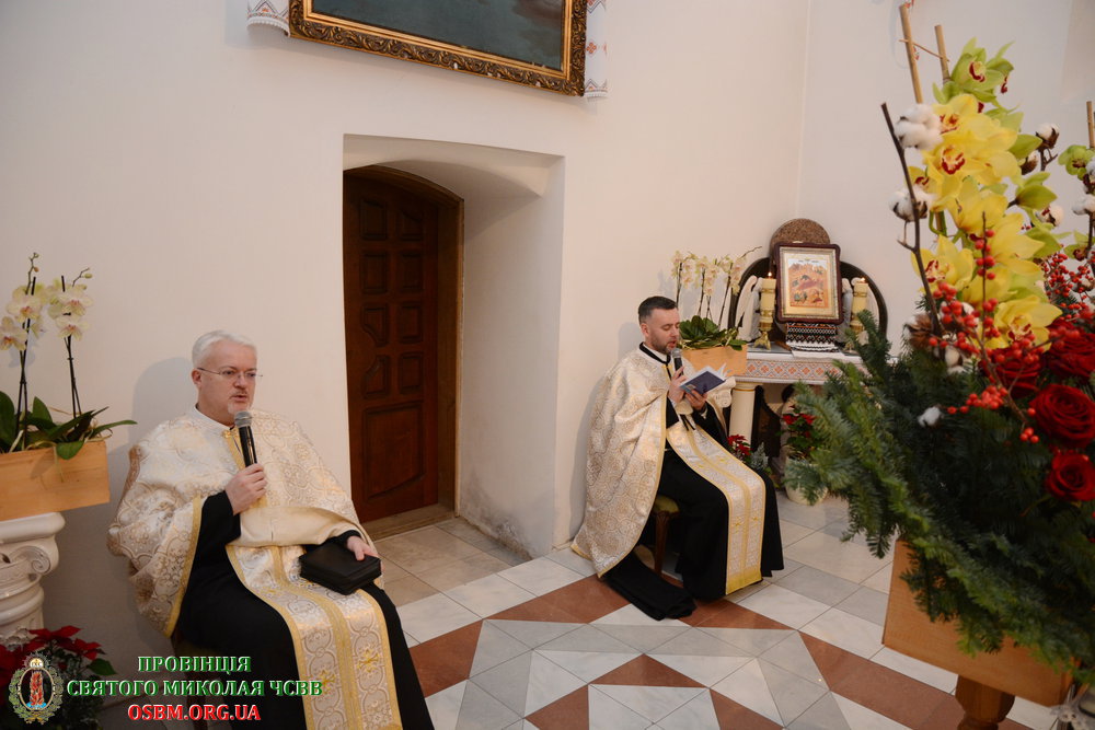 Разом з Протоігуменом різдвяні богослужіння співслужили ієромонахи: о. Лука Буняк ЧСВВ – Настоятель монастиря, та о. Прокопій Лотоцький ЧСВВ, а літургійний спів, разом з Настоятелем провадив бр. Христофор Юрик ЧСВВ.