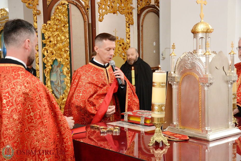 На завершення богослужіння, Протоігумен звернувся до присутніх із словом, в якому наголосив на особливості цьогорічного вшанування Плащаниці Господньої, якою ми тепер огортаємо також і нашу Україну, що страждає і вмирає від війни.