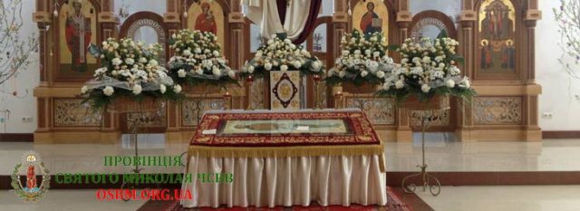 Плащаниця, виставлена в Боронявському монастирі Отців Василіян, у Страсну П’ятницю, 10 квітня 2015 року Божого.