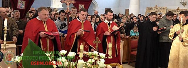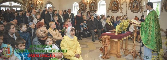 Святкова Божественна Літургія, яку очолив Настоятель отець Веніамин Довганич ЧСВВ, та благословення галузок, в Мукачівському монастирі Отців Василіян, у Квітну неділю, 5 квітня 2015р. (ФОТОРЕПОРТАЖ)